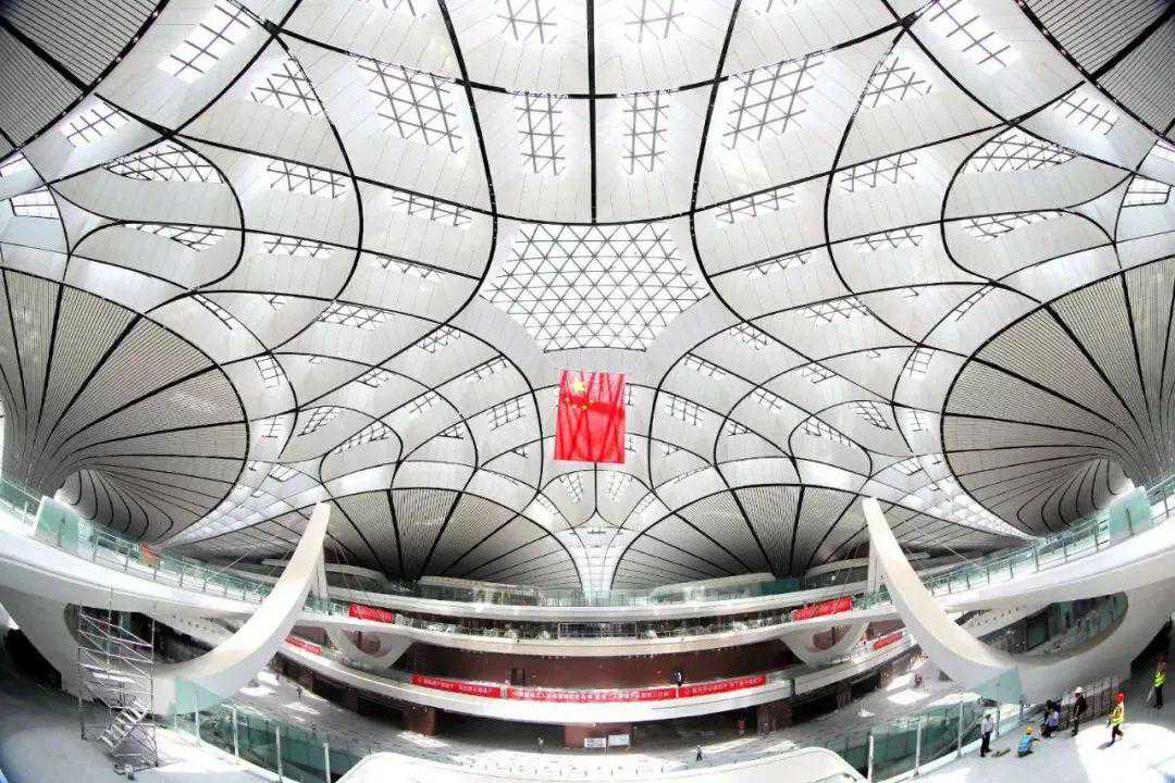 大興機場站廳無縫對接機場和高鐵換乘空間。在裝修設(shè)計風(fēng)格上與機場保持一致,以新時代的“空中絲路”為主題,以行云流水的飄帶發(fā)散引導(dǎo)客流,以中國紅為點綴,營造與機場換乘廳統(tǒng)一的空間效果,體現(xiàn)國門第一線的中國文化,北京韻味!