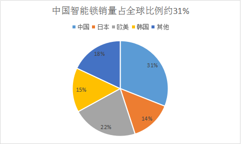 從2017年智能鎖行業(yè)市場大爆發(fā)以來,今年上半年,全國智能鎖行業(yè)再次迎來快速發(fā)展期。從市場情況來看,我國智能鎖銷量約占全球智能鎖銷量31%,且仍在增加。